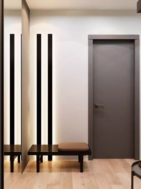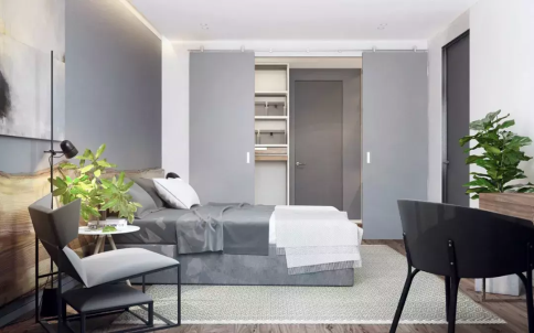 帶有衣帽柜、儲物柜等擁有貯藏性能的空間,是隱形門最常顯現的地區。將它們和門的色彩融為一體,在空間視覺上,起到了較好的協作成效。
