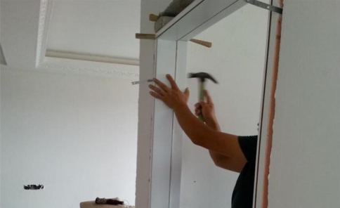 接著再用膨脹螺絲把這類鐵片固定到了墻體里,如此一來,門套就會變得十分堅固。用徒弟的話說,即使想拆都不是如此較易拆下來的,除非將門套給毀壞掉。最終應用發(fā)泡劑把門套與墻體之間的裂縫填充上就行了。而其余徒弟在裝載時,不說會用膨脹螺絲了,就連這個鐵片預計都不會用。