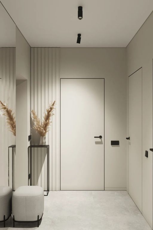 極致簡約的造型,高度的色彩凝練,將木門作為空間設計的入口,讓木門、墻板、家具飾面效果一體化,是家居空間的點睛之筆。